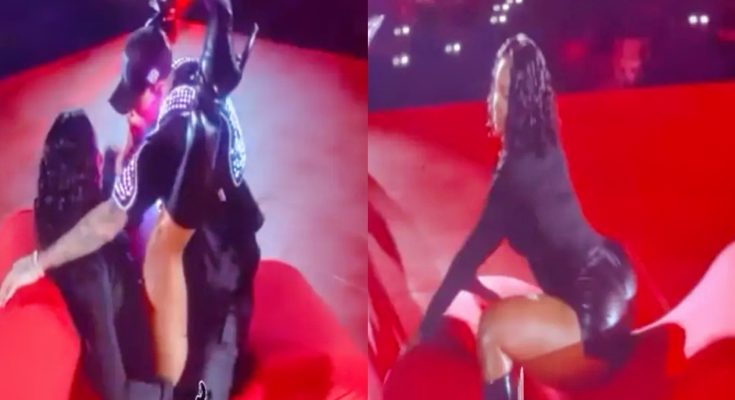Grammy-winning singer Chris Brown gave Travis Kelce’s ex-girlfriend quite the lap dance during the singer’s Breezy Bowl XX Tour in Los Angeles on Sunday.