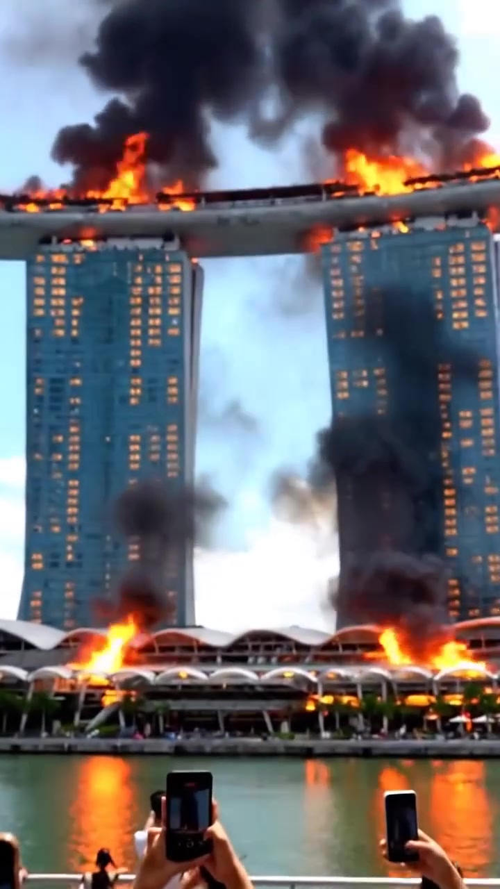 For those watching, time feels suspended. A building that once symbolized progress and aspiration now appears fragile, wrapped in flames. And yet, even in this moment of danger, Marina Bay Sands stands firm, its base unmoved, its iconic frame unbroken.
