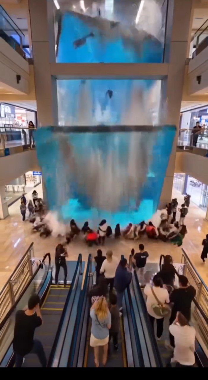 Escalators and walkways were inundated, and the atrium was transformed into a miniature indoor waterfall. Despite the chaos, no serious injuries have been reported.